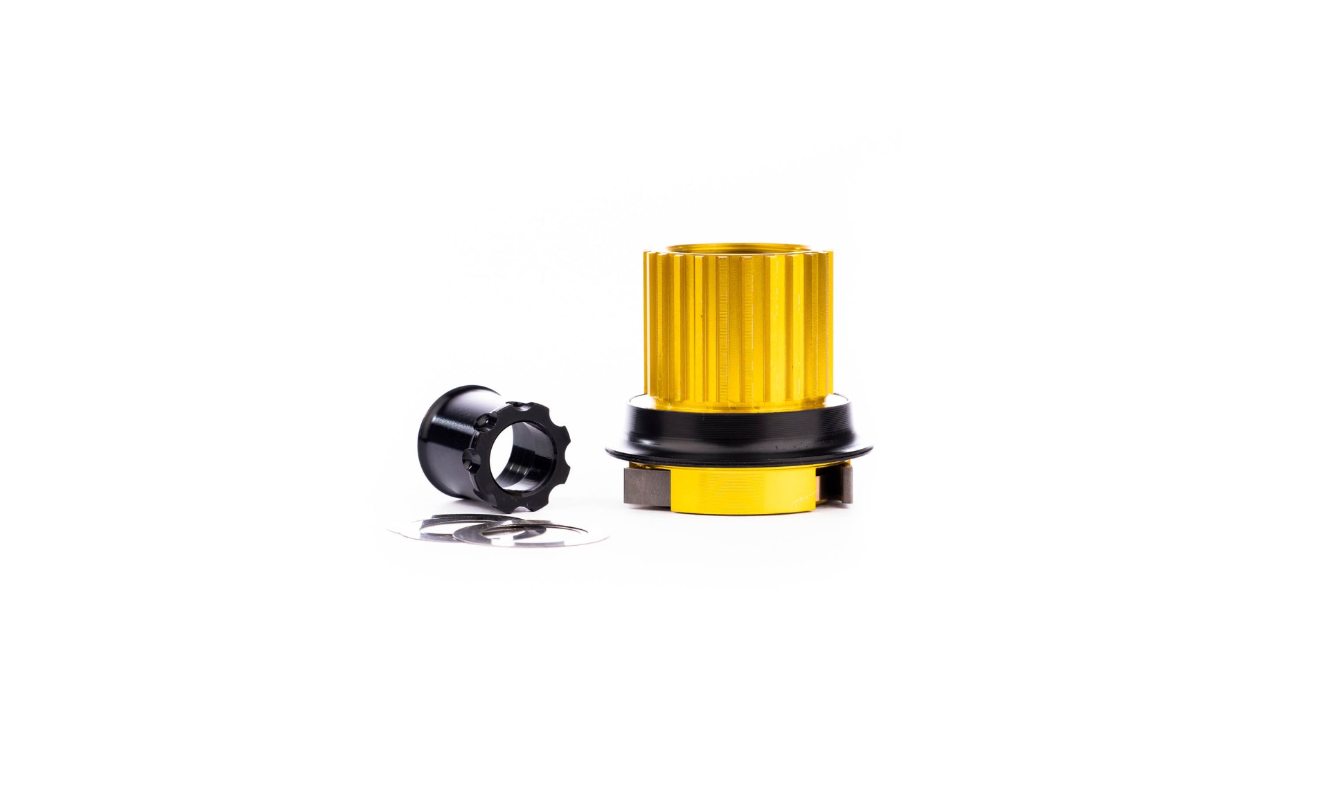 This freewheel body set is suitable for all Tune hubs with a 17 mm axle and is suitable for use with 12 mm thru axles. The Tune Endurance freewheel body has been reinforced compared to the standard freewheel bodies in order to be able to absorb the leverage of wide-range cassettes and hard starts better. The axial bearing play can be adjusted using the shims included in the scope of delivery. Technical specifications: Material: aluminum 7075, titanium (pawls) Compatibility cassettes: Shimano Micro Spline 12-speed Compatibility hubs: Tune hubs with 17 mm axle Compatibility wheels: Tune wheelsets axle type : 12x 142 mm | 12x 148 mm BOOST thru axle Freewheel type: 3 pawls Bearings: double industrial bearings, rustproof and sealed Color gold Weight according to the manufacturer: 75g Weight weighed: 66g