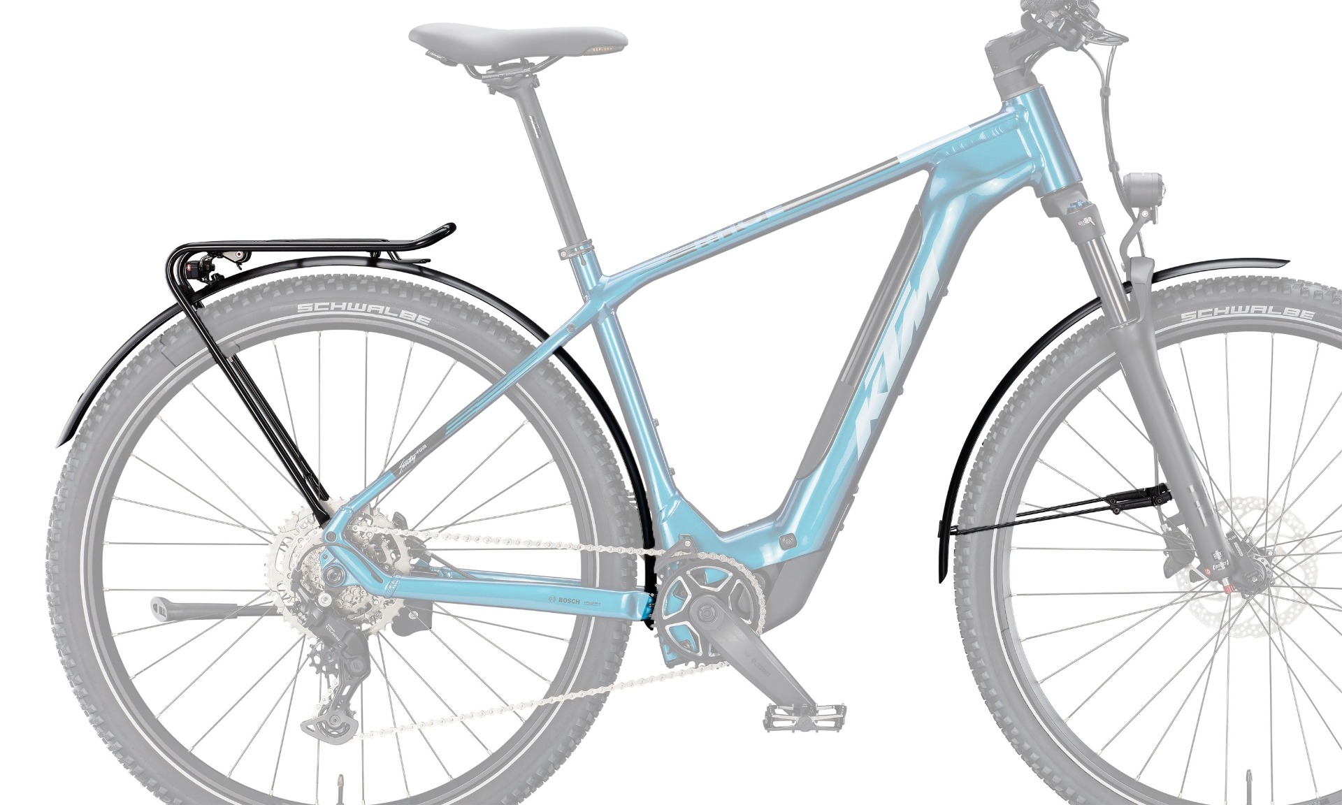 KTM LFC (Light Fender Carrier) Set – speziell entwickelt für den Rahmentyp M-4810. Ausgestattet mit breiten SKS Schutzblechen (65 mm) für optimalen Spritzschutz, dem hochwertigen Racktime Alumee Gepäckträger mit Snapit 2.0 System sowie dem integrierten Litemove TS-RK Rücklicht und RF2 Rückstrahler für maximale Sicherheit. Inklusive Montageset – die ideale Nachrüstlösung für dein Hardtail MTB.
